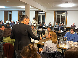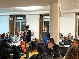 Geschäftseingänge am Claraplatz, verschmutzte Kirchen und Plätze – Dreck ist im Kleinbasel sichtbarer geworden. Aber wer macht den Dreck? Ist es nur die Drogenszene, die ihren Dreck liegen lässt und an der nächsten Ecke uriniert? Diesen Fragen ging der Drogenstammtisch vom 25.03.2025 mit dem provokanten Titel «Dreck und Drogen – wie verbessern wir die Situation?» nach. Rund 55 Interessierte wie Fachpersonen fanden sich im Rheinfelderhof ein, um über die Situation auf den Kleinbasler Strassen und Hauseingängen zu diskutieren, die Ursachen für die Verschmutzung zu erkennen und Lösungen zu finden. Das Stadtteilsekretariat organisierte den mittlerweile fünften Drogenstammtisch wie immer zusammen mit dem Lokalmedium «bajour» und mit Moderatorin Martina Rutschmann.